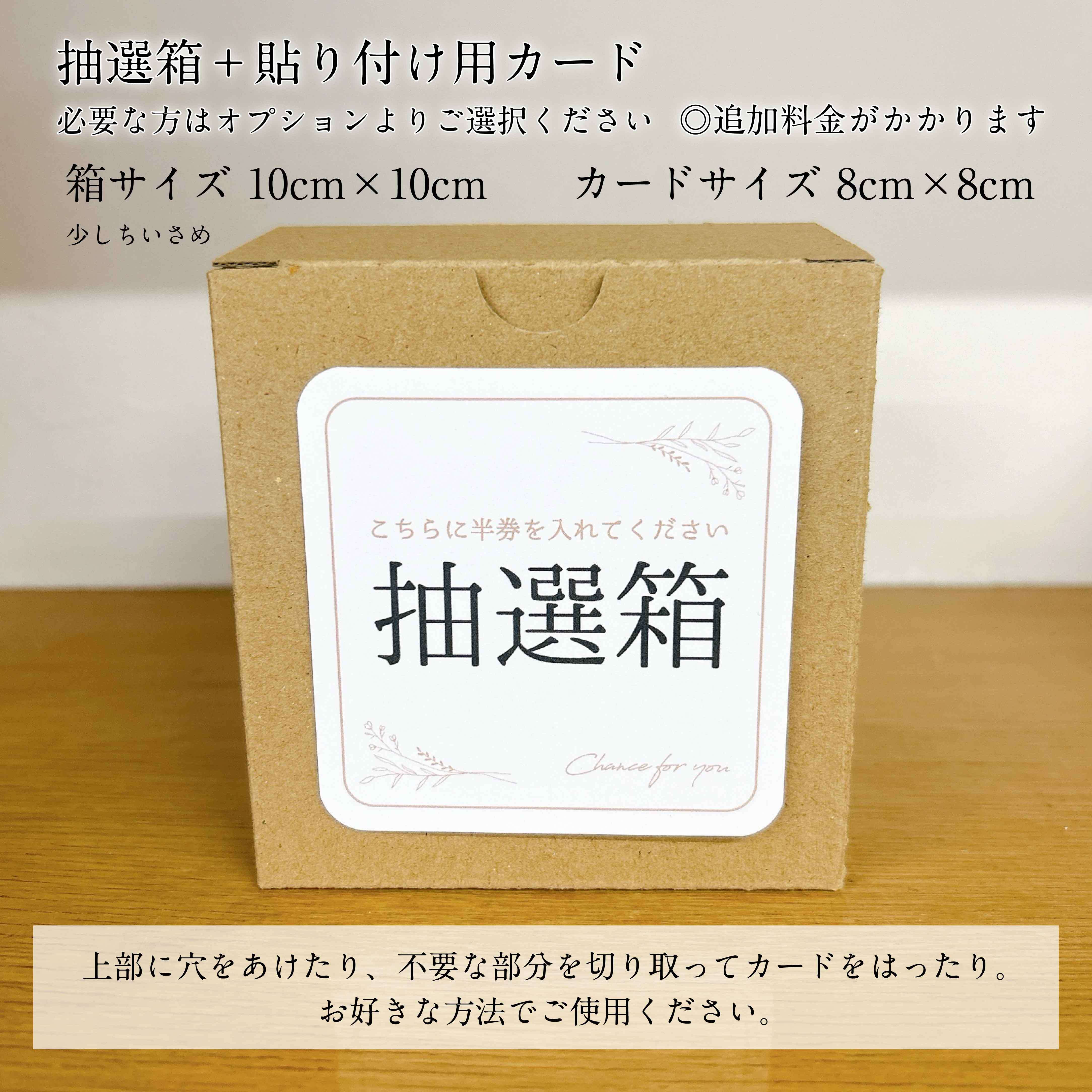 抽選箱と箱につけられるカードもオプションでご購入いただけます。