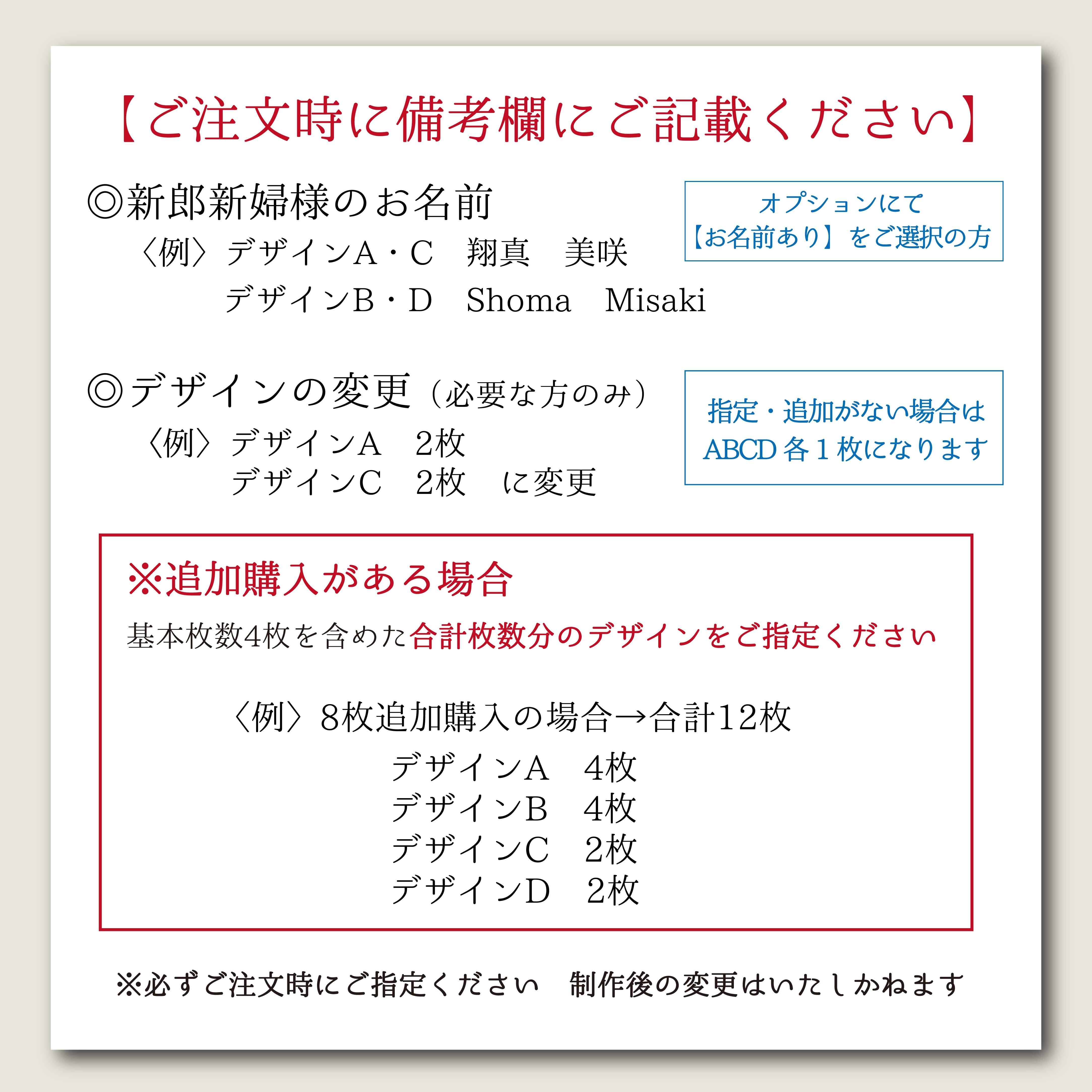 (デザインの指定がない場合はA~Dを各1枚づつ作成いたします)