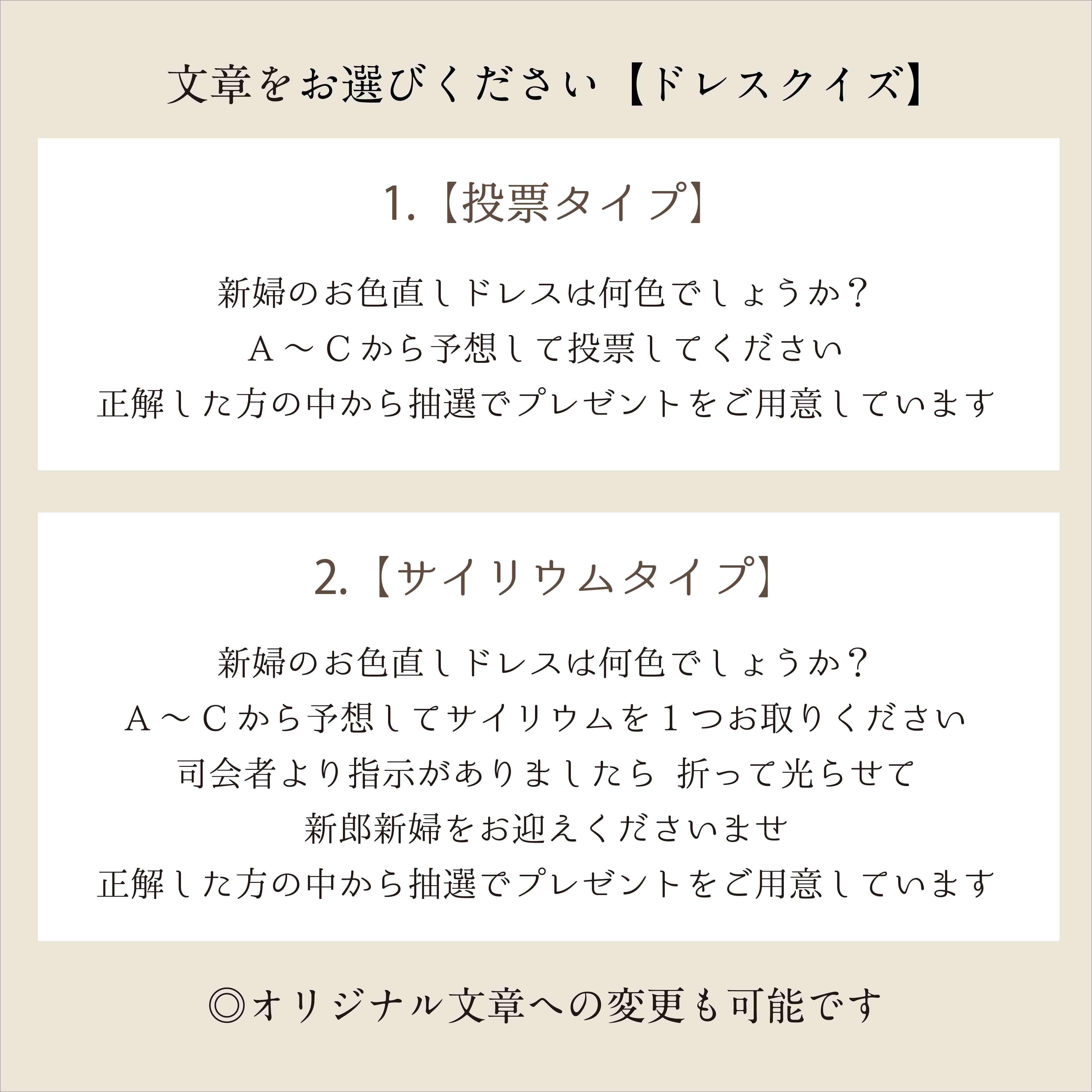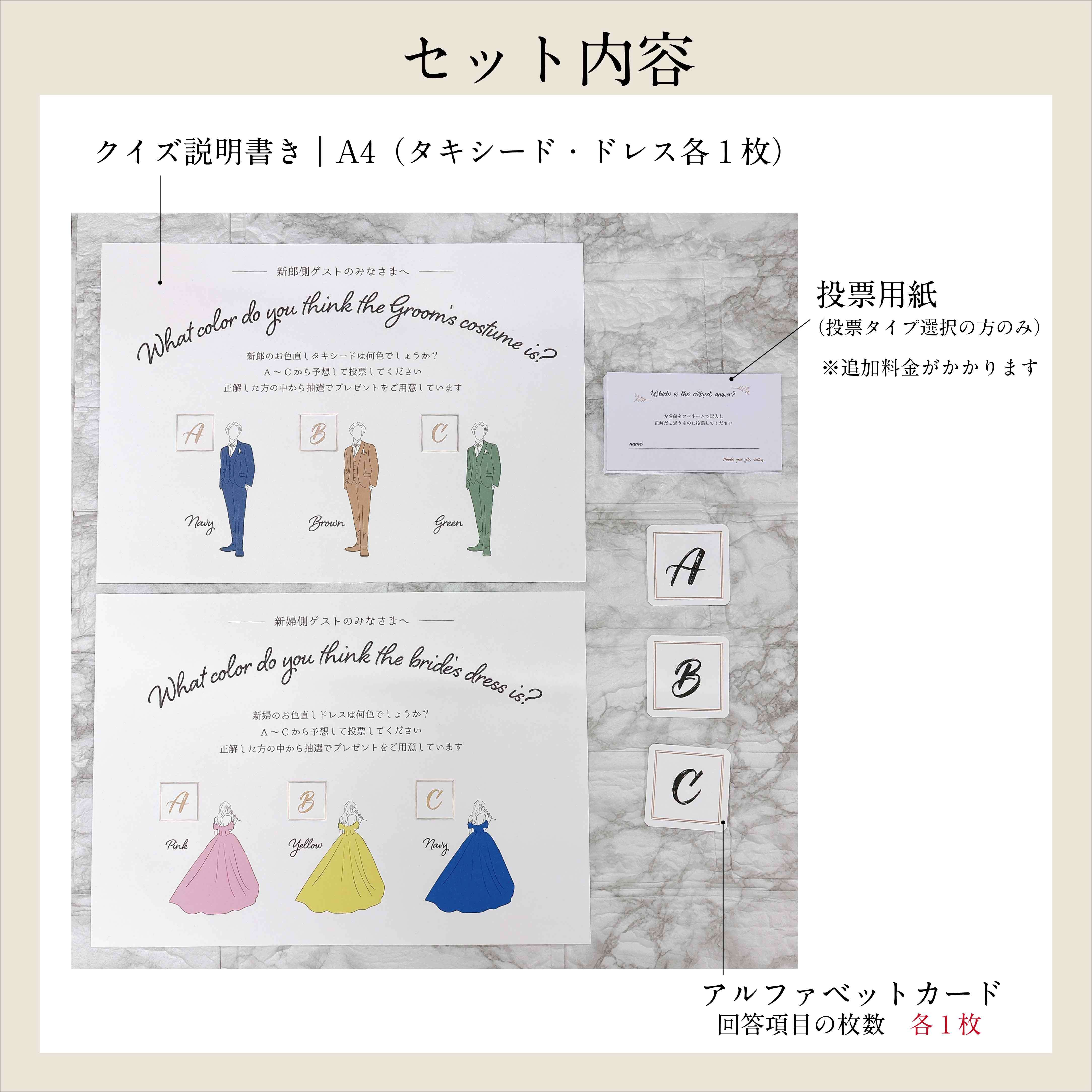 【タキシード・ドレス色当てクイズセット ーデザインBー】 アルファベットカード付き 投票タイプ|サイリウムタイプ