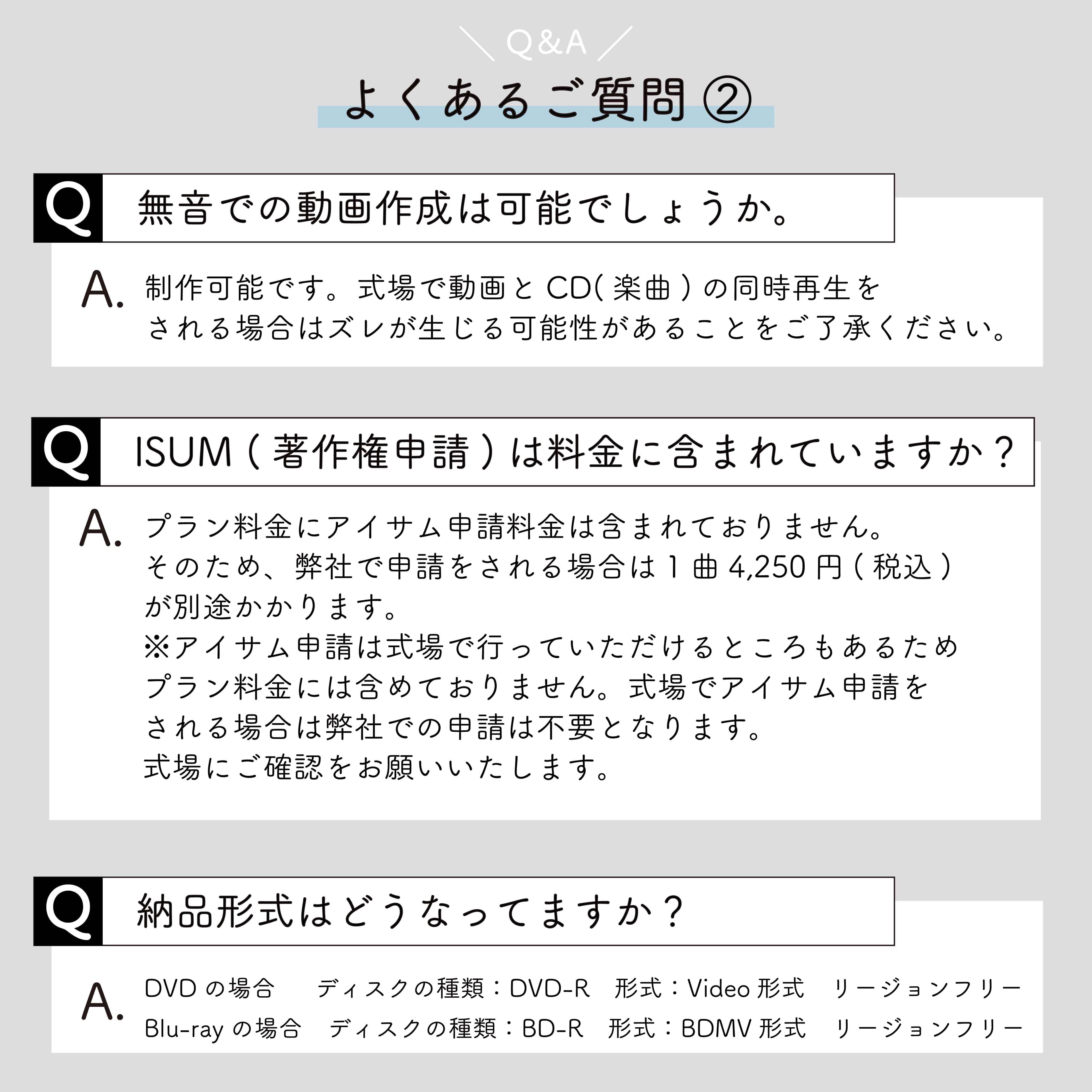 ありがとうを伝えるをコンセプトに、結婚式で上映するオープニングムービー・プロフィールムービー・エンドロールムービー・レタームービー の制作を行っております。映像のプロだからこそ出来る、演出・完成度だけではなく、式場からの上映時の注意点につきましても幅広く対応が可能です。新郎新婦様やゲストの皆様も忘れられない「心に残る」演出映像を多く取り揃えております。
