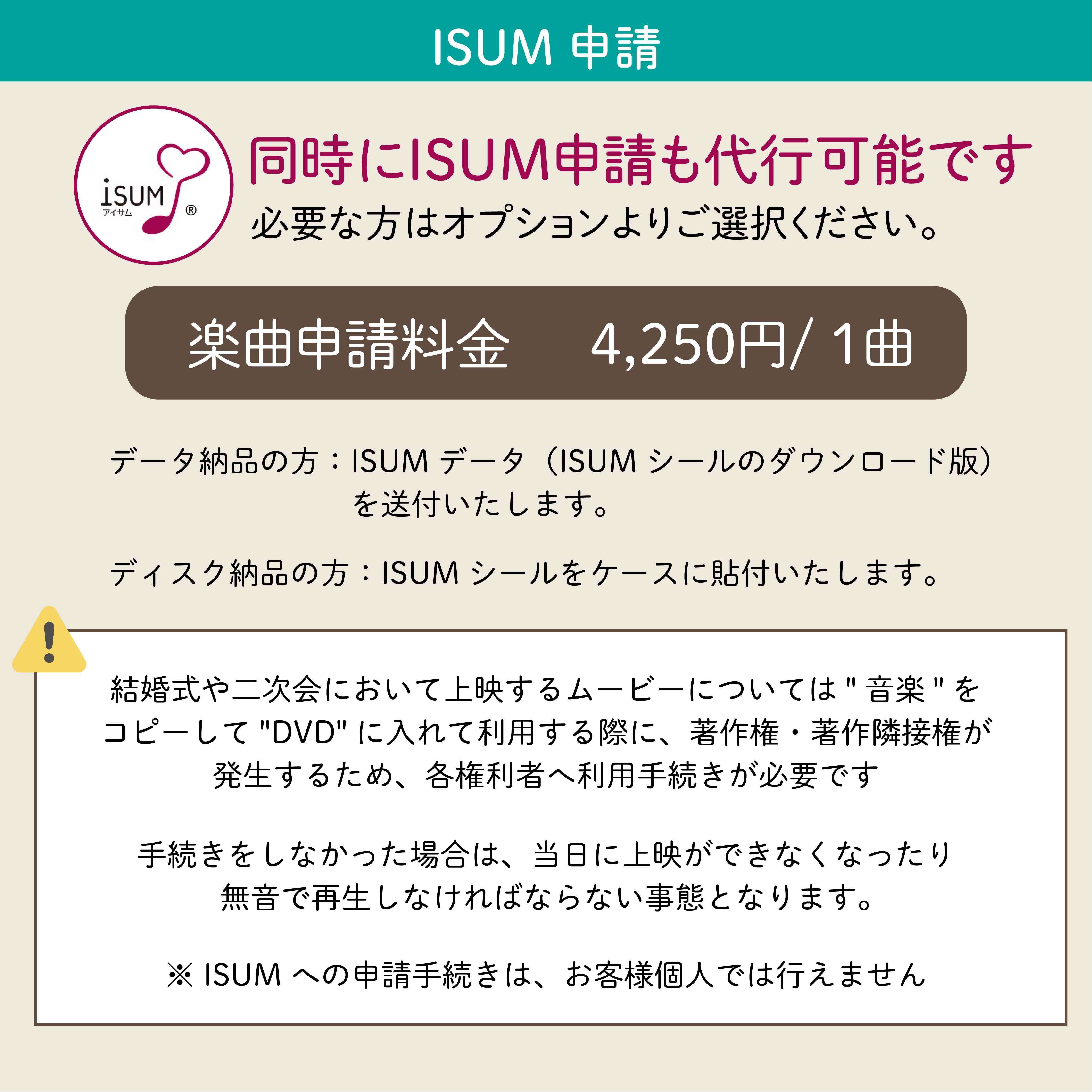 ISUM楽曲データベースに登録がある楽曲のみ申請可能です。