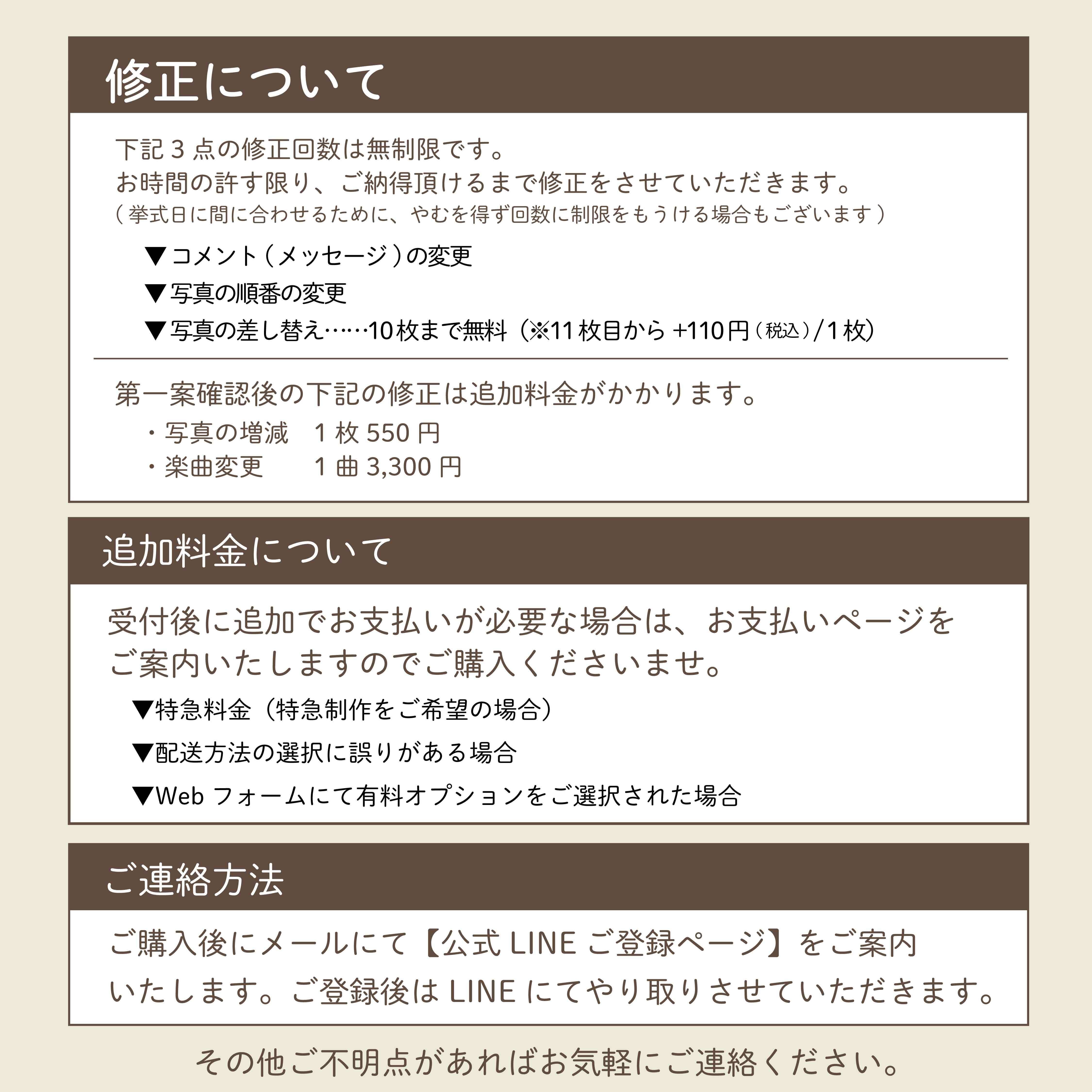 お好きな音楽、写真で作ることが出来るので、お二人だけのオリジナルムービーが作成可能です。