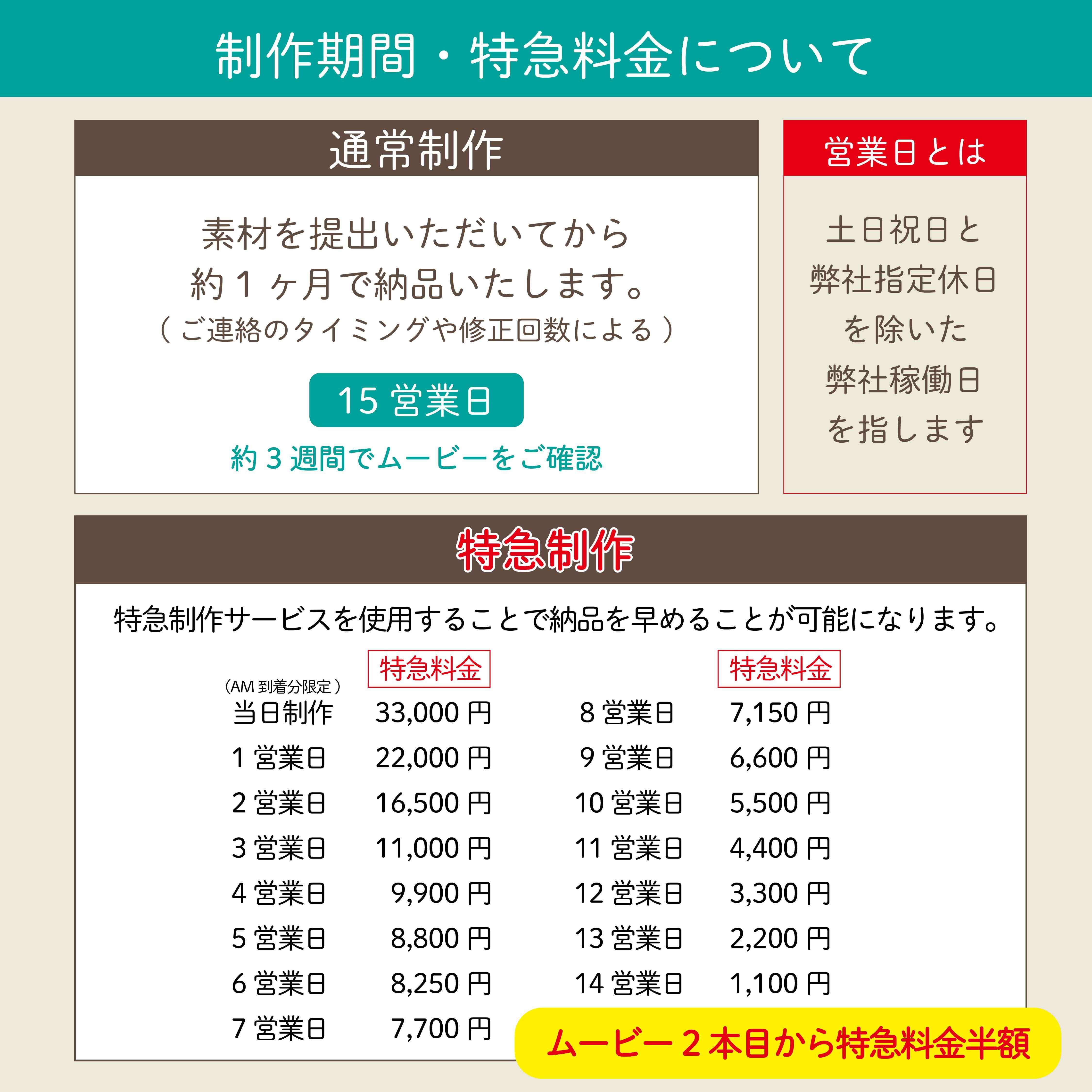 15営業日より短い納期をご希望の方は、特急制作もご用意しております。