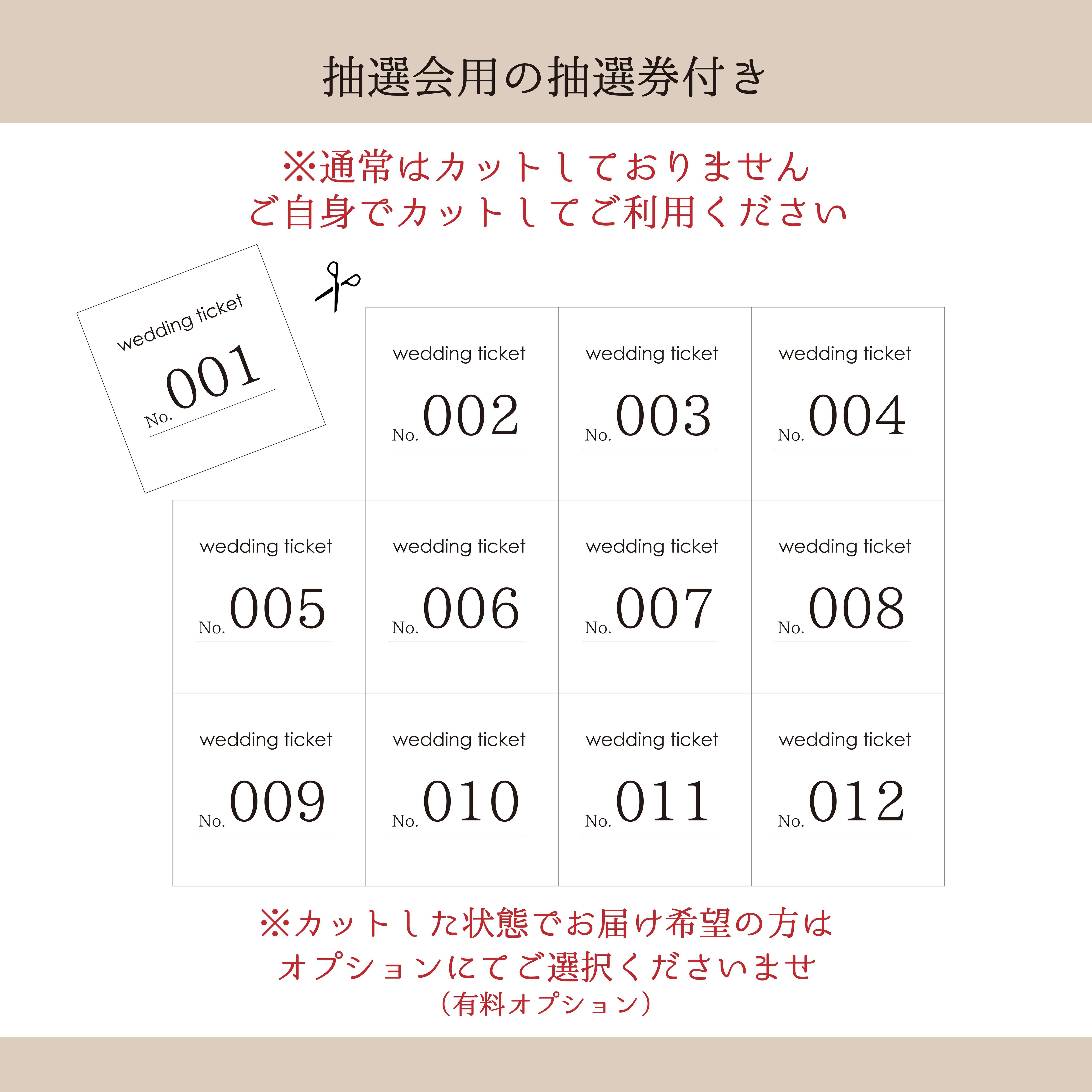 ゲストにお配りする《抽選チケット》と、くじ引き用《抽選券》がついたウェディング宝くじセット♪