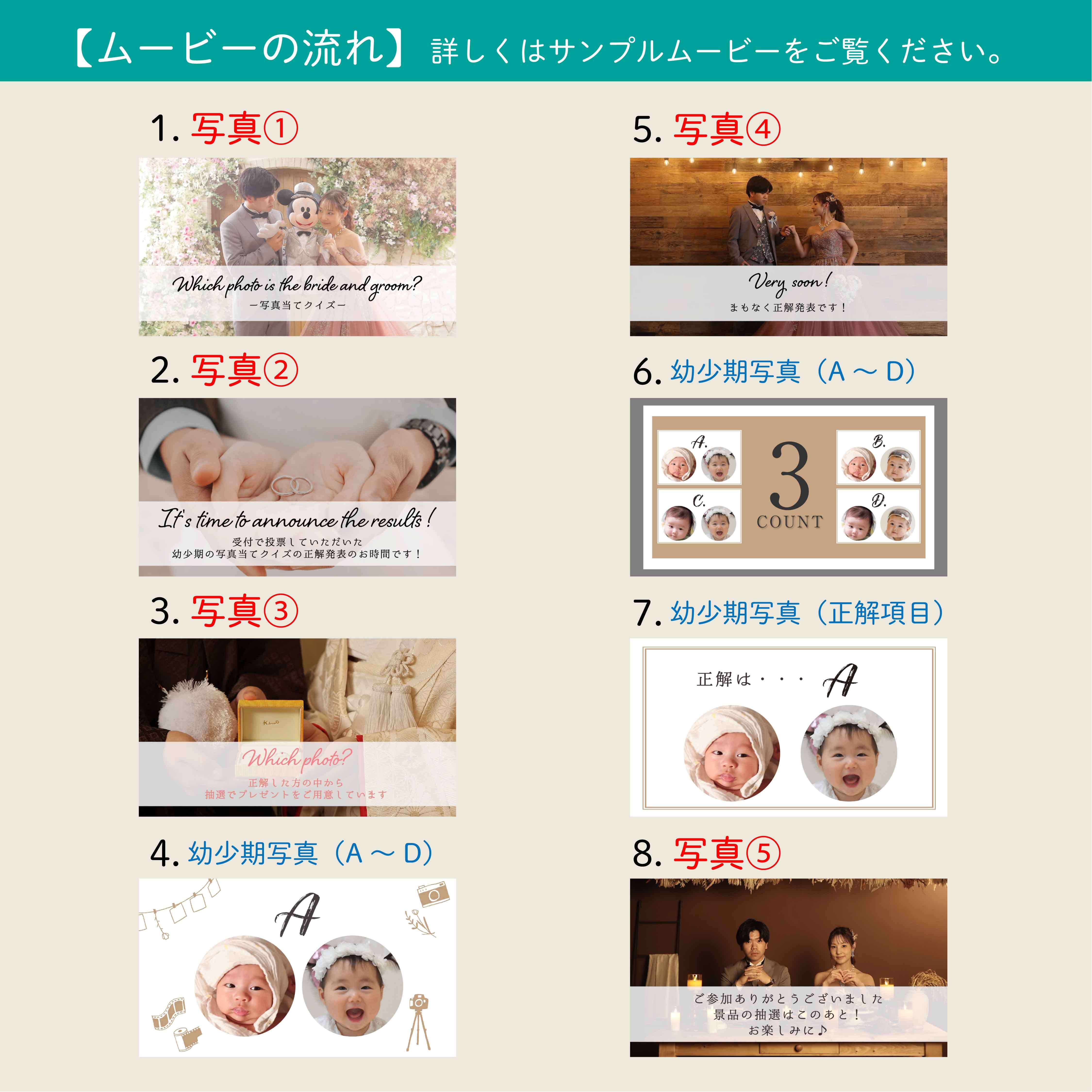 『写真当てクイズ』は、新郎新婦の幼少期の写真を用いて