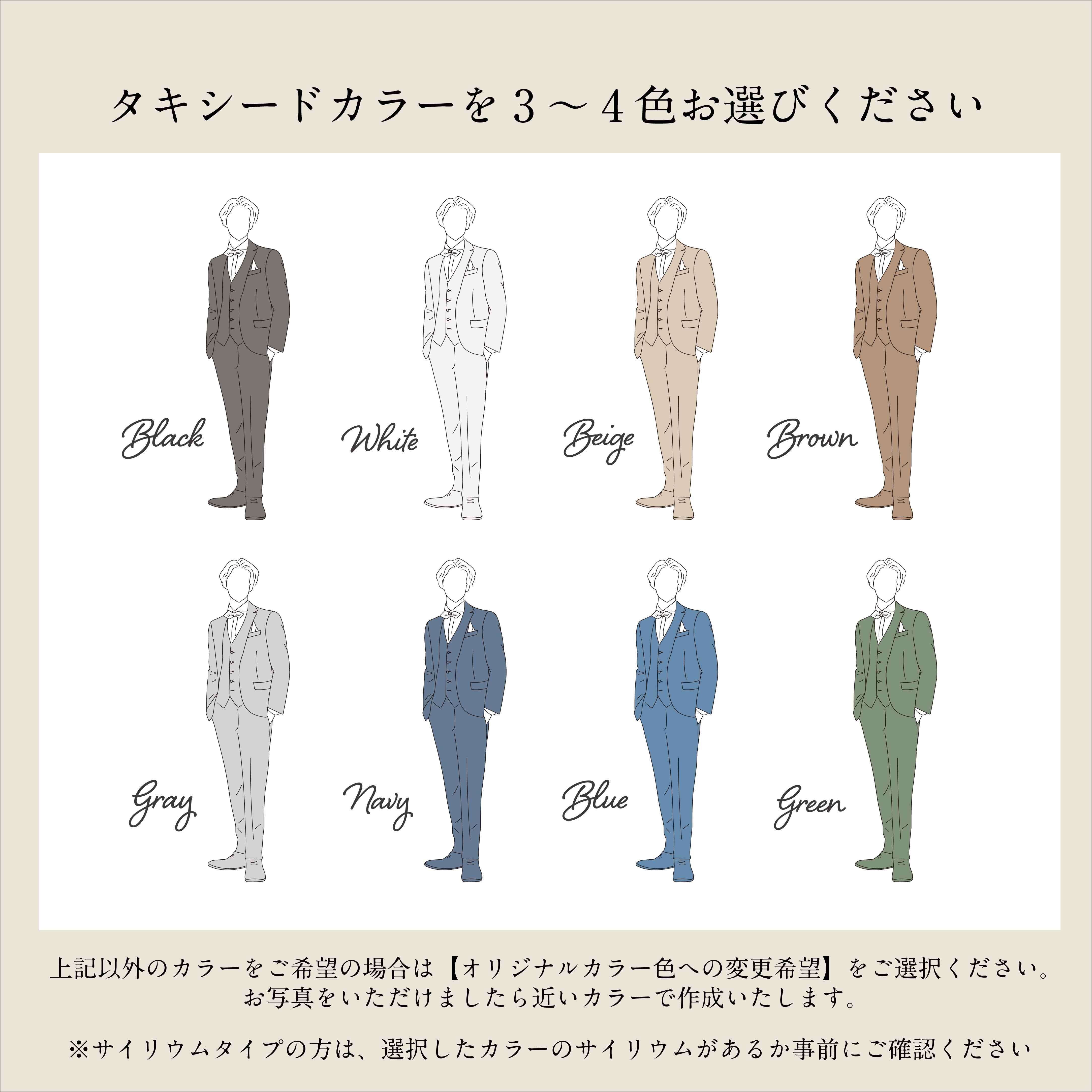 ・タキシード|ドレスについて画像2枚目、3枚目の色見本より3色~4色選択の上、組み合わせを備考欄に記載ください。