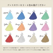 オリジナル色への変更をご希望の場合はオプションより選択いただき、カラーを記載、見本となる写真をご購入後のメッセージにて送っていただけましたら近い色で作成いたします。花柄や複数色を使用したドレス見本などは作成出来ない場合がありますので、事前にご相談ください。