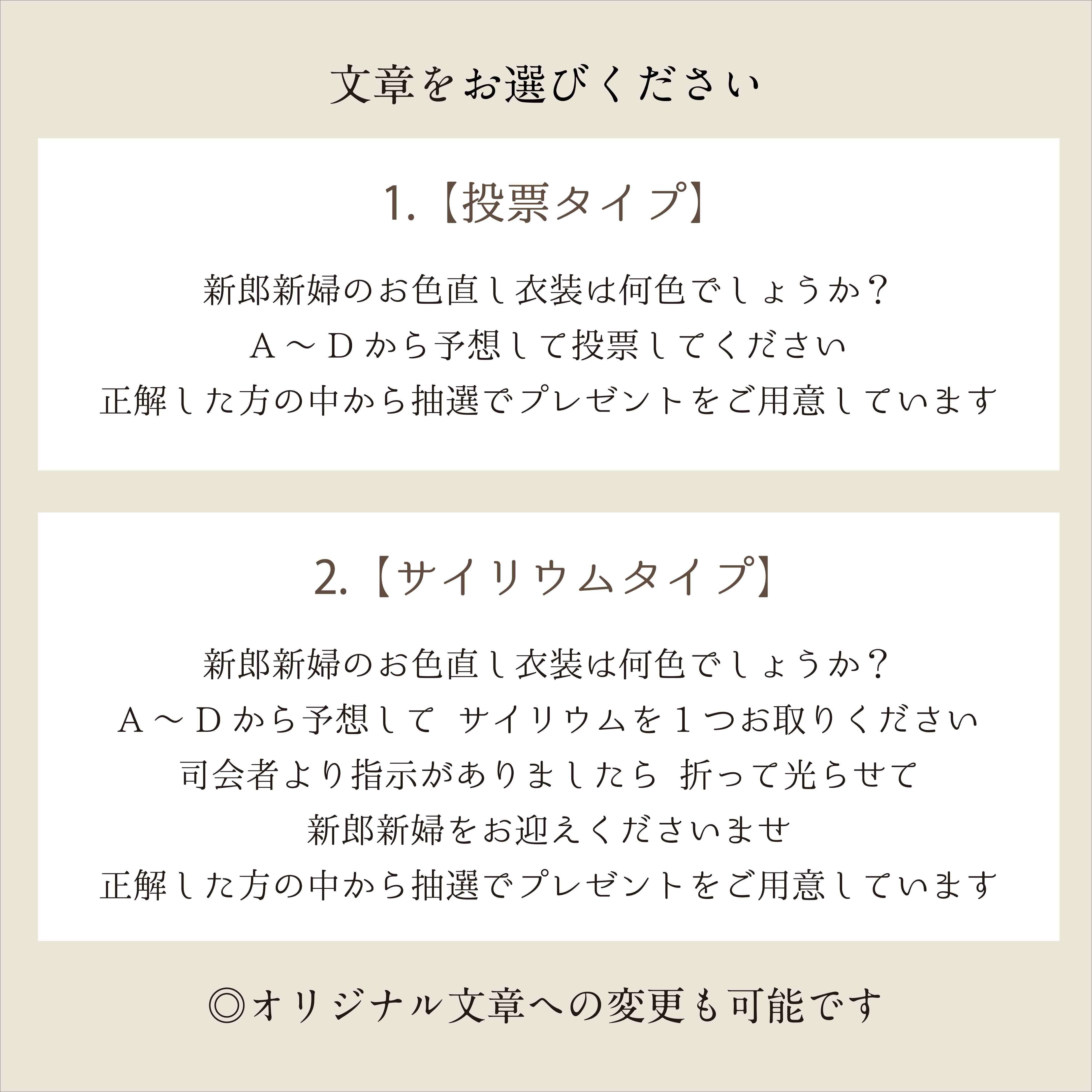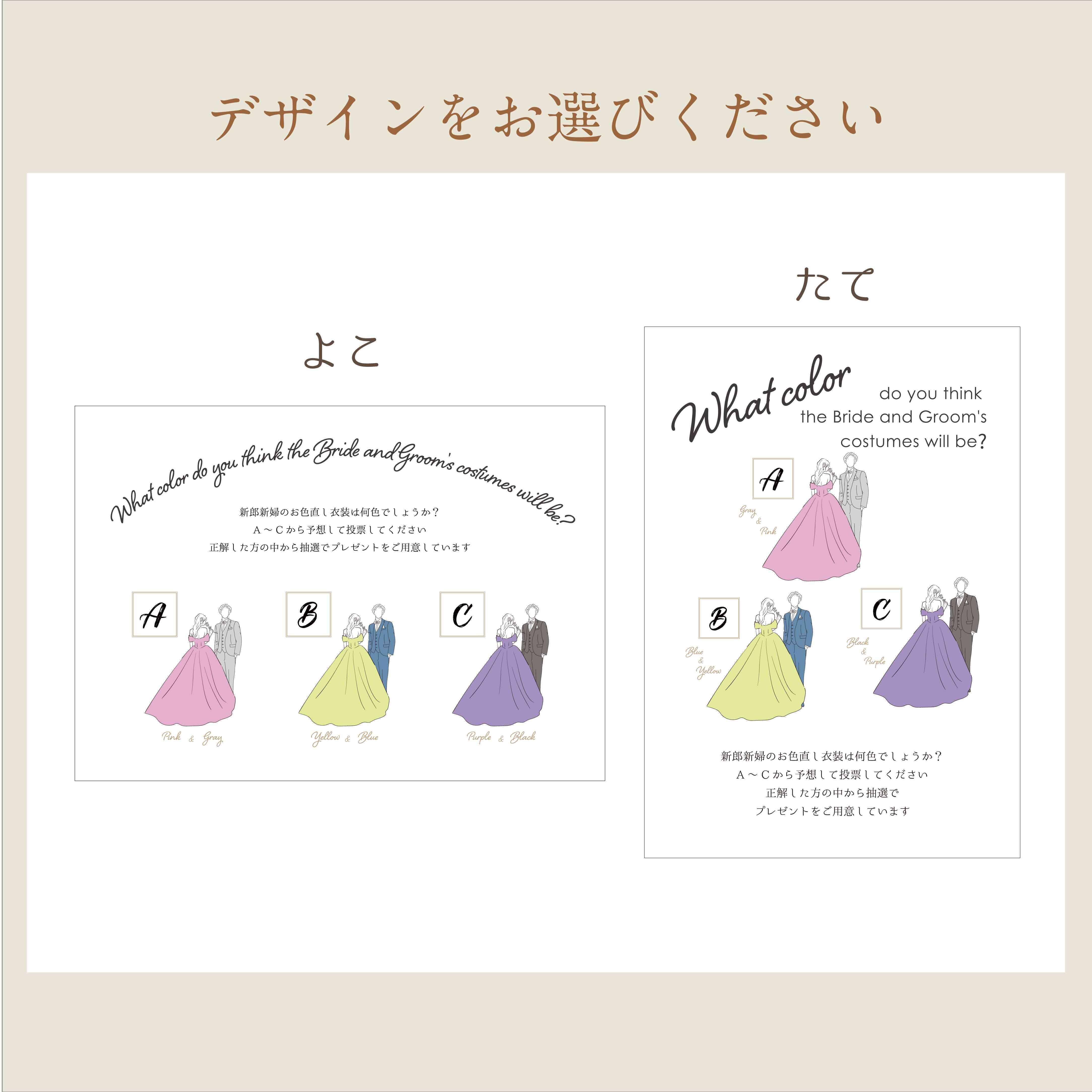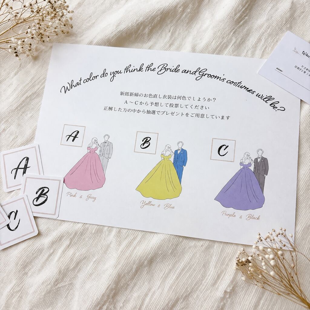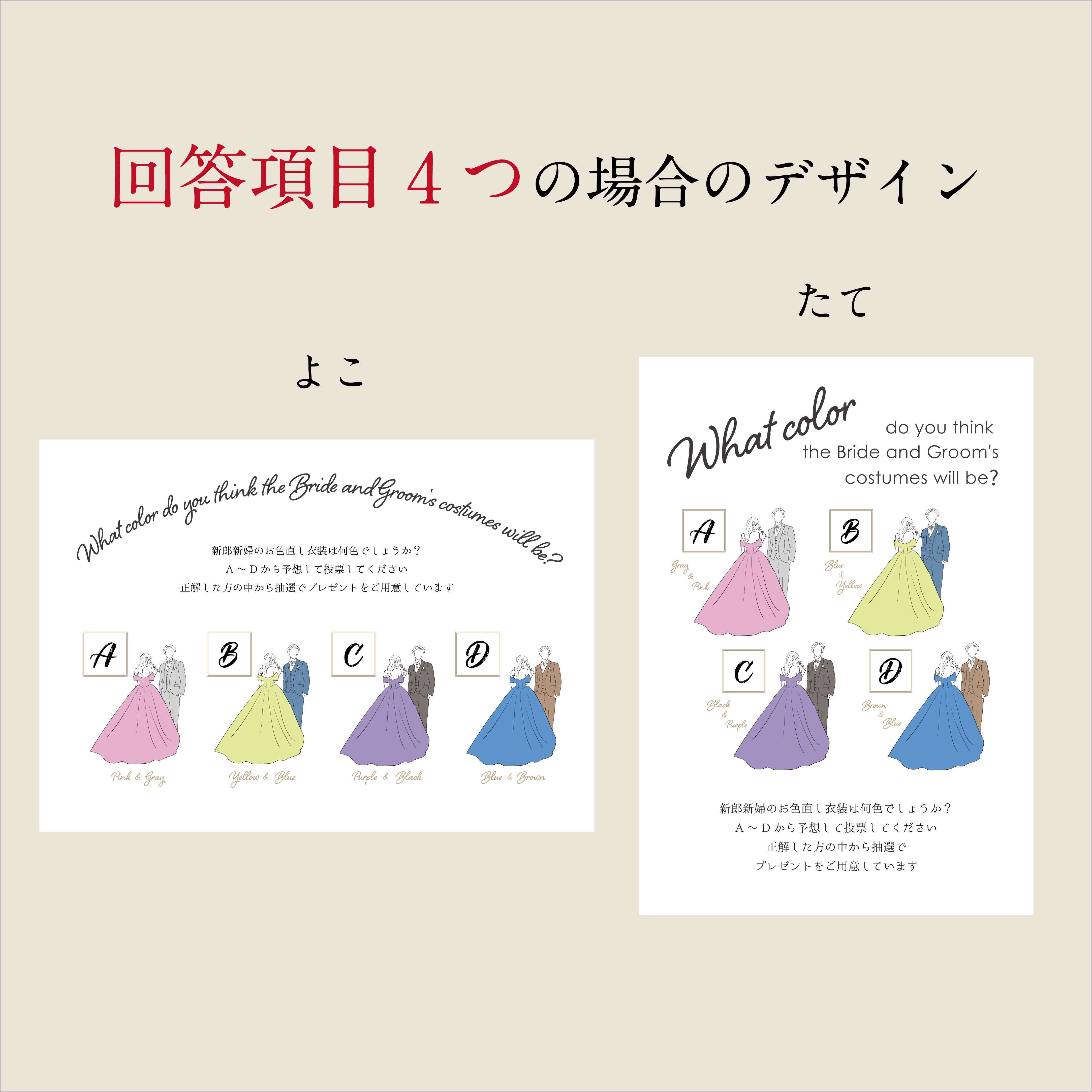A4サイズ【ドレス&タキシードカラー色当てクイズ】#2ビビット アルファベットカード付き 投票タイプ|サイリウムタイプ