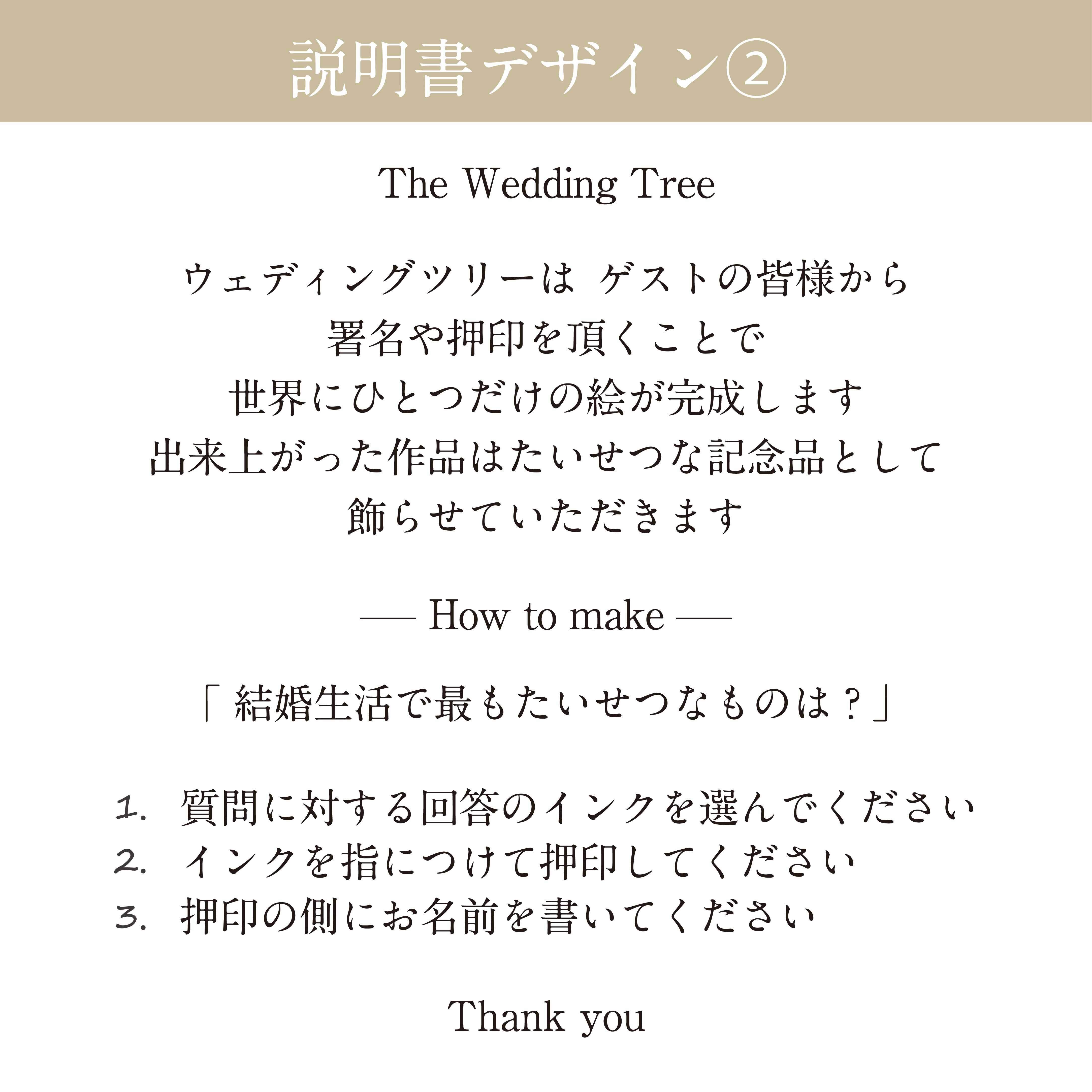 ・作品と同じイラストが描かれたウェディングツリー説明書(A5サイズ)を1枚無料でお付けいたします。デザインについてはオプションより選択ください。
