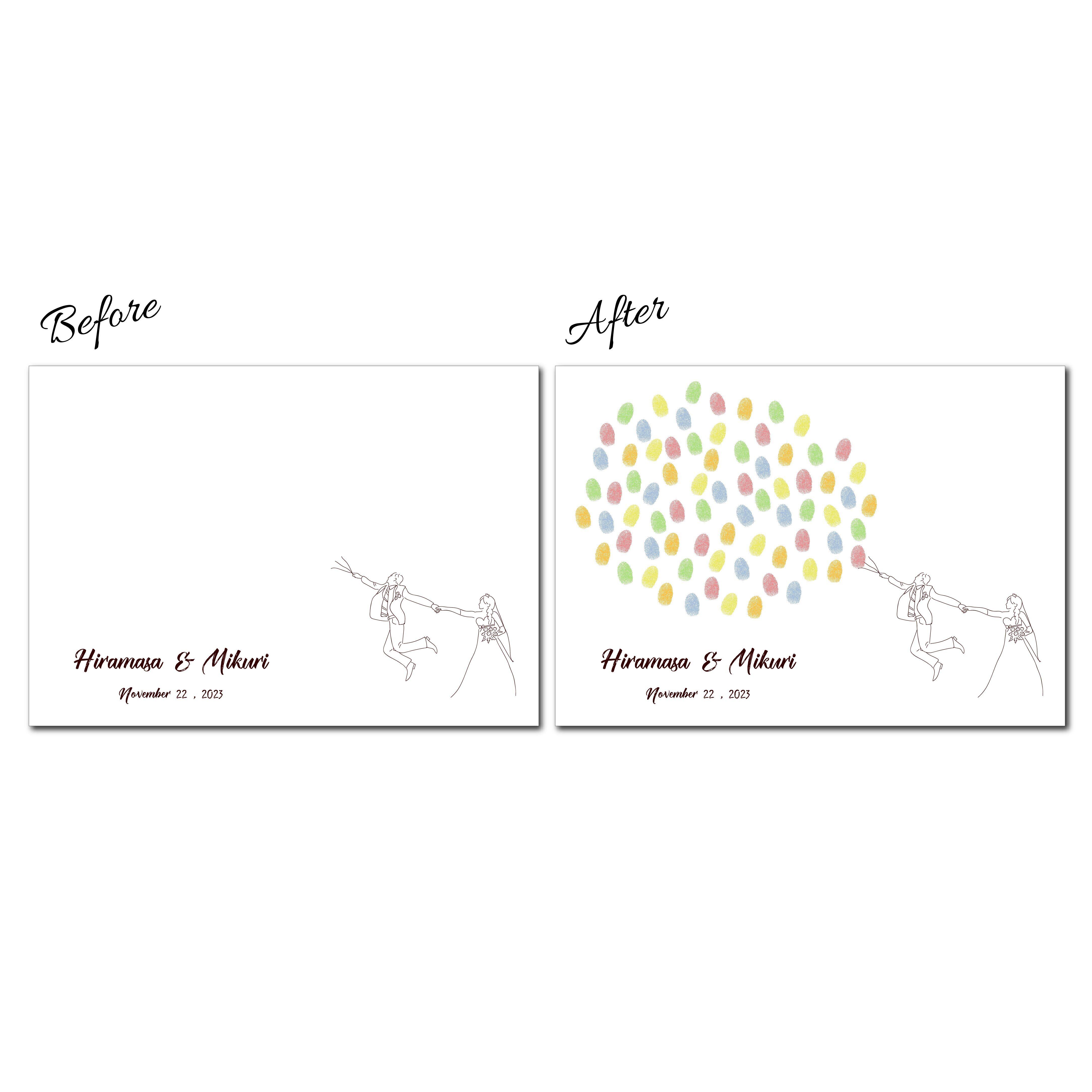 ・作品と同じイラストが描かれたウェディングツリー説明書(A5サイズ)を1枚無料でお付けいたします。デザインについてはオプションより選択ください。