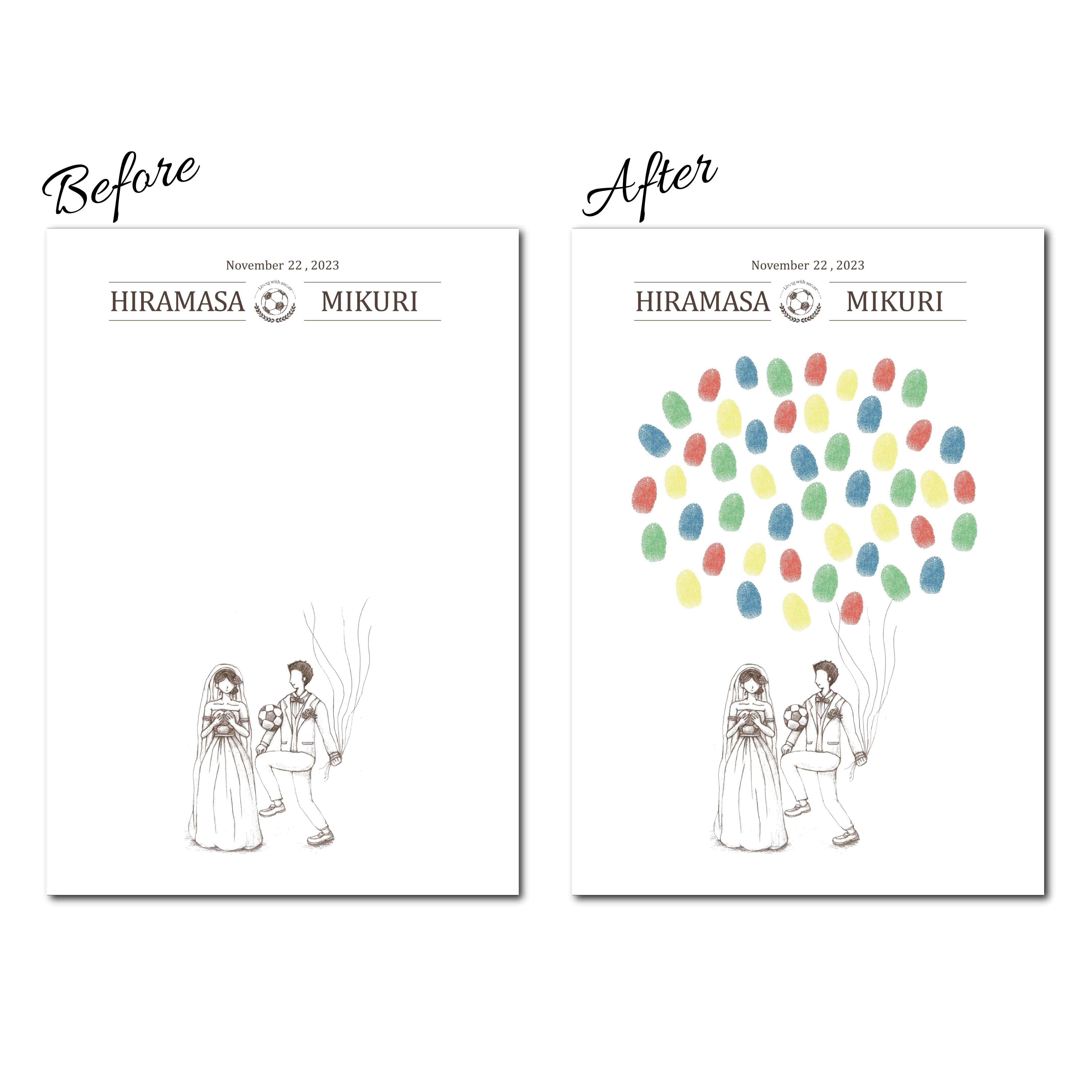 ・作品と同じイラストが描かれたウェディングツリー説明書(A5サイズ)を1枚無料でお付けいたします。デザインについてはオプションより選択ください。