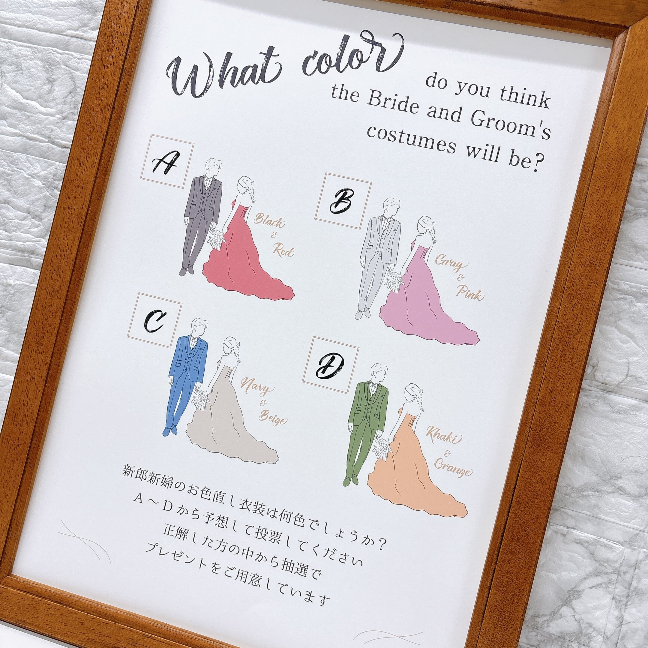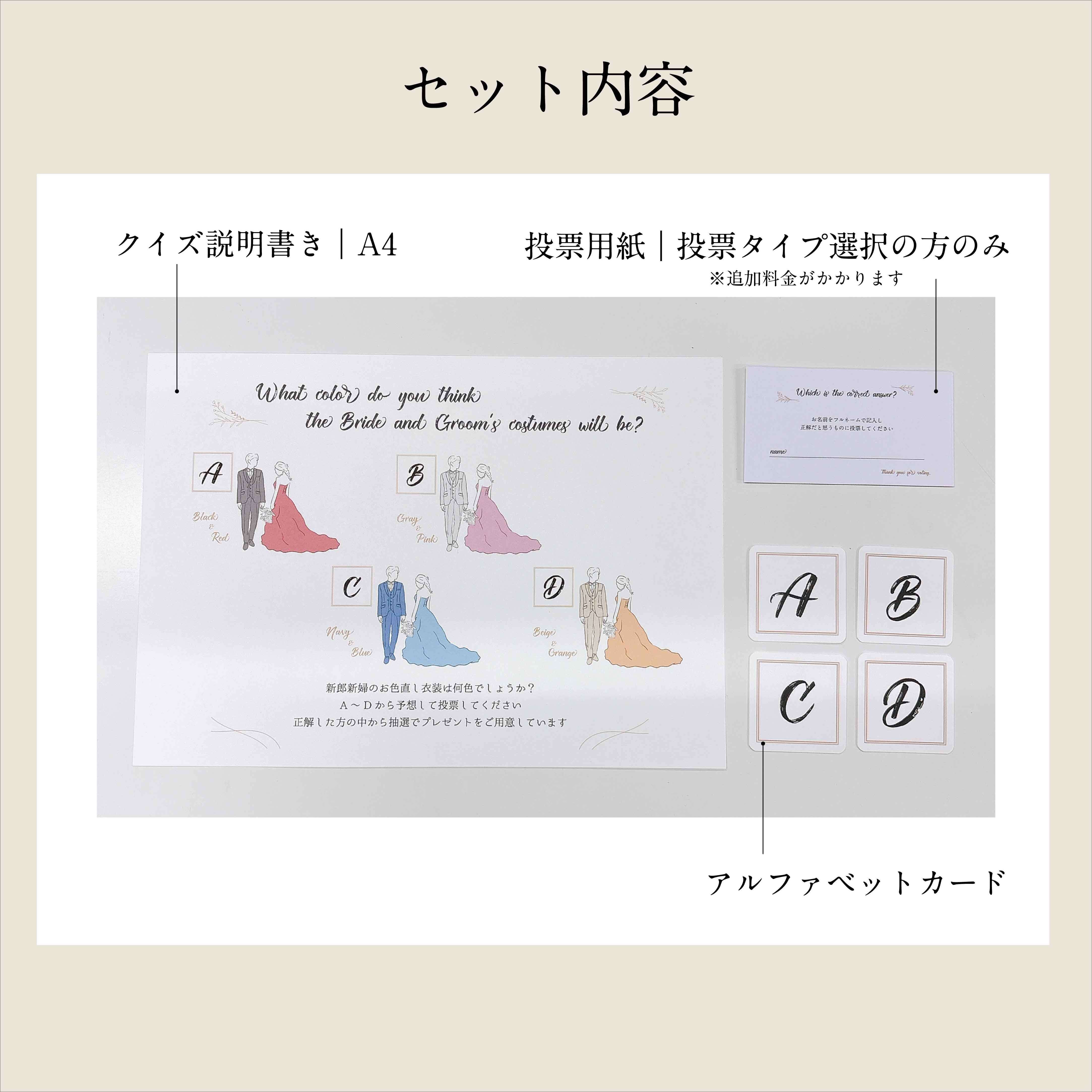 A4サイズ【ドレス&タキシードカラー色当てクイズ】#1パステル アルファベットカード付き 投票タイプ|サイリウムタイプ